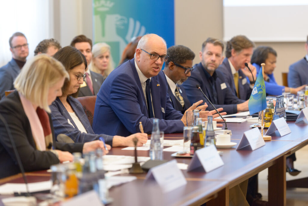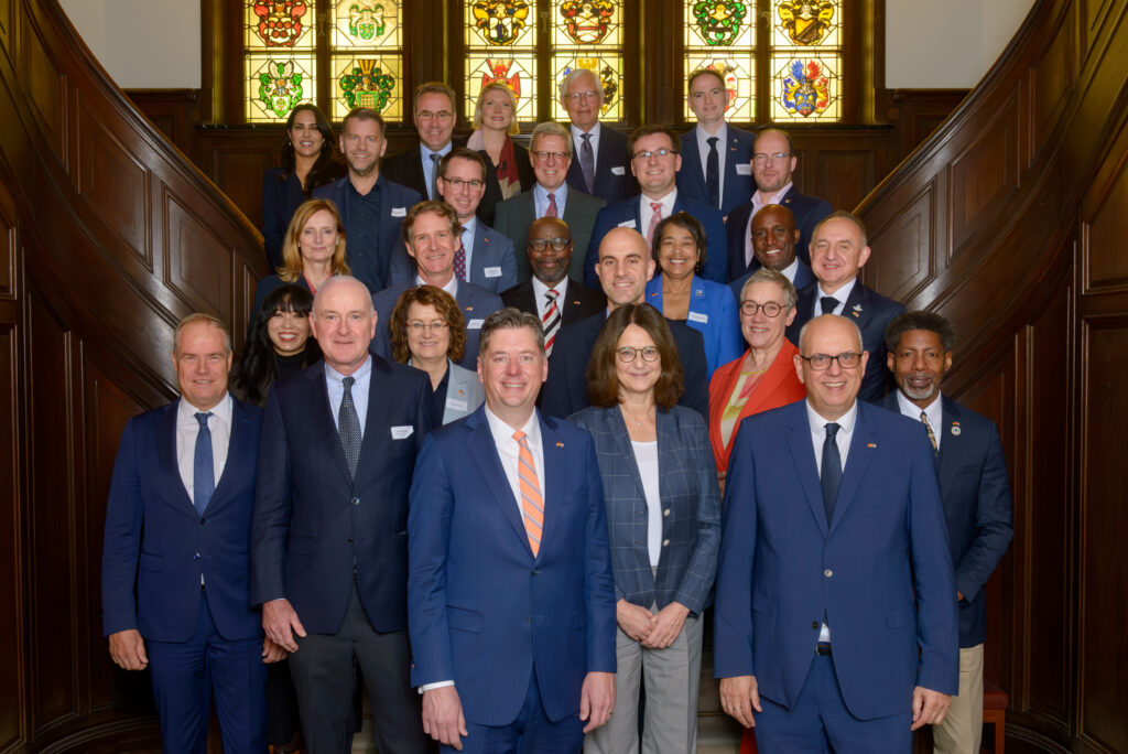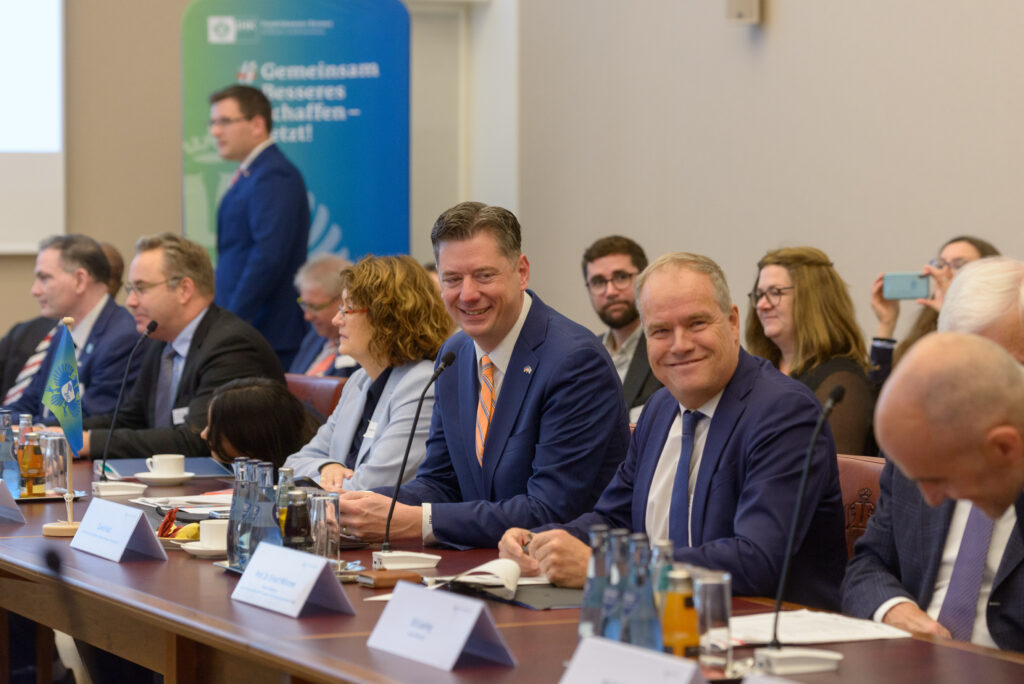 Finanziert durch das Auswärtige Amt im Rahmen des Projekts Urban Diplomacy Exchange (UDE) fand auf Einladung der Freien Hansestadt Bremen und in Zusammenarbeit mit dem Deutschen Städtetag der deutsch-amerikanische Mayor´s Roundtable statt. Dabei kamen in den Räumen der Handelskammer Bremen 22 Bürgermeister*innen und Bürgermeister aus Deutschland und den USA zusammen.
